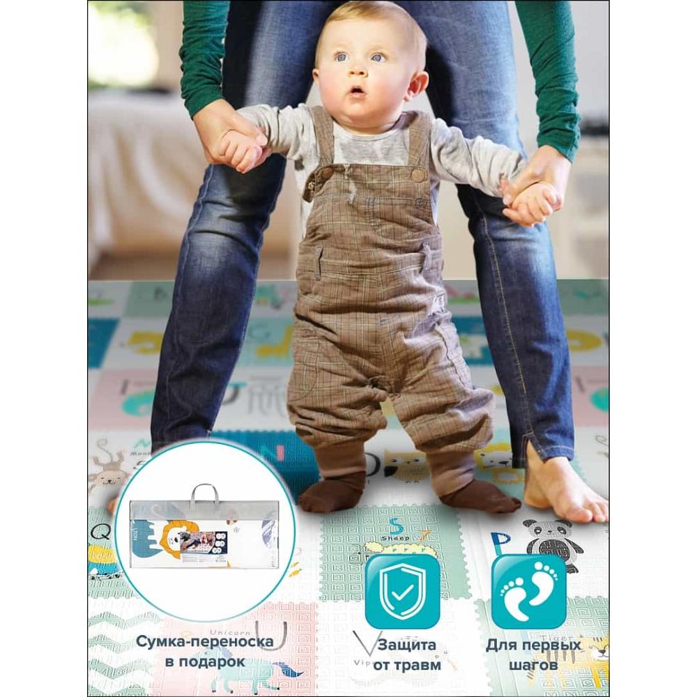 Коврик развивающий поможет ребенку научиться ползать, ходить и увлечет играми. Коврик имеет 2 стороны с разным рельефом и рисунком, для развития сенсорного восприятия. Поверхность имеет рельеф, это предотвращает скольжение и падение ребенка. Это играет важную роль в защите ребенка от травм, когда он учится ползать и вставать, что позволяет малышу чувствовать себя увереннее. Также коврик не пропускает холод.