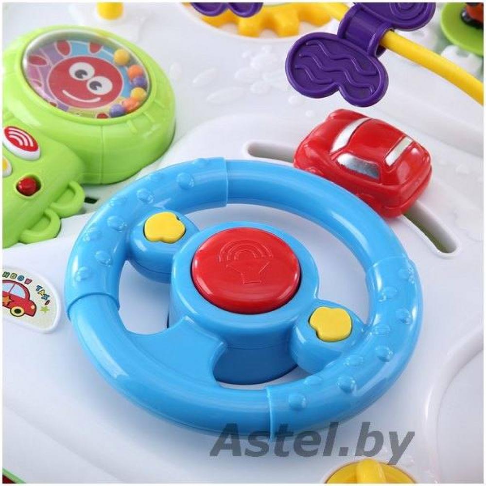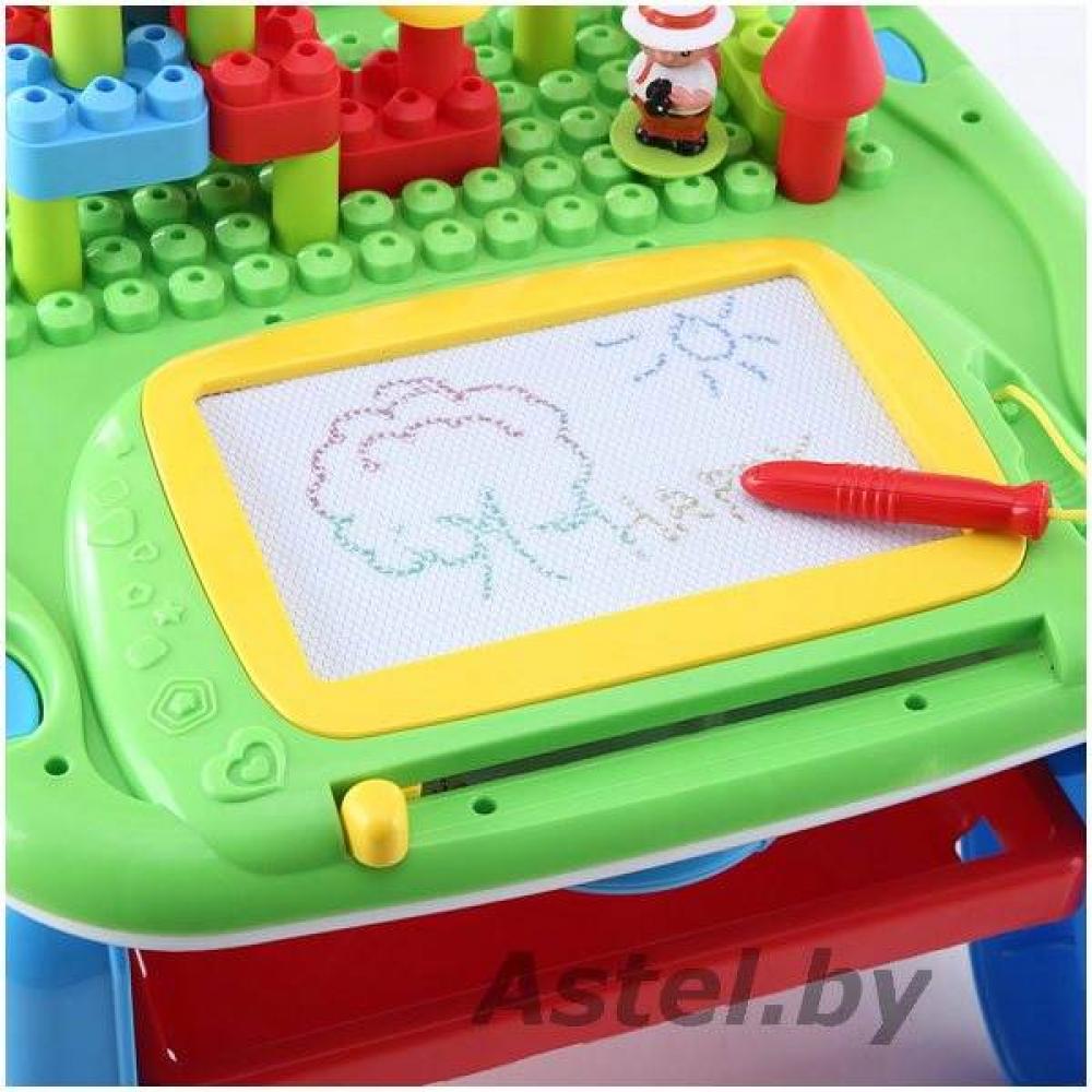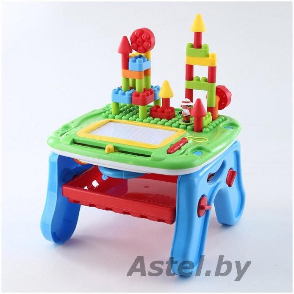 Развивающий центр Строитель выполнен в виде игрового столика, который имеет двустороннюю игровую панель. Различные функциональные кнопки научат ребенка распознавать цвета, звуки животных, звучание нот, ночные и утренние звуки. Игрушка развивает моторику рук, память, координацию движений. С одной стороны игровой поверхности имеется руль, рычаги и кнопочки, маленький телефон и многое другое. С другой стороны - платформа для конструктора и магнитная доска для рисования. В комплект входят элементы конструктора 31 эл-т. Для работы необходимы две батарейки типа ААА. (в комплект не входят).