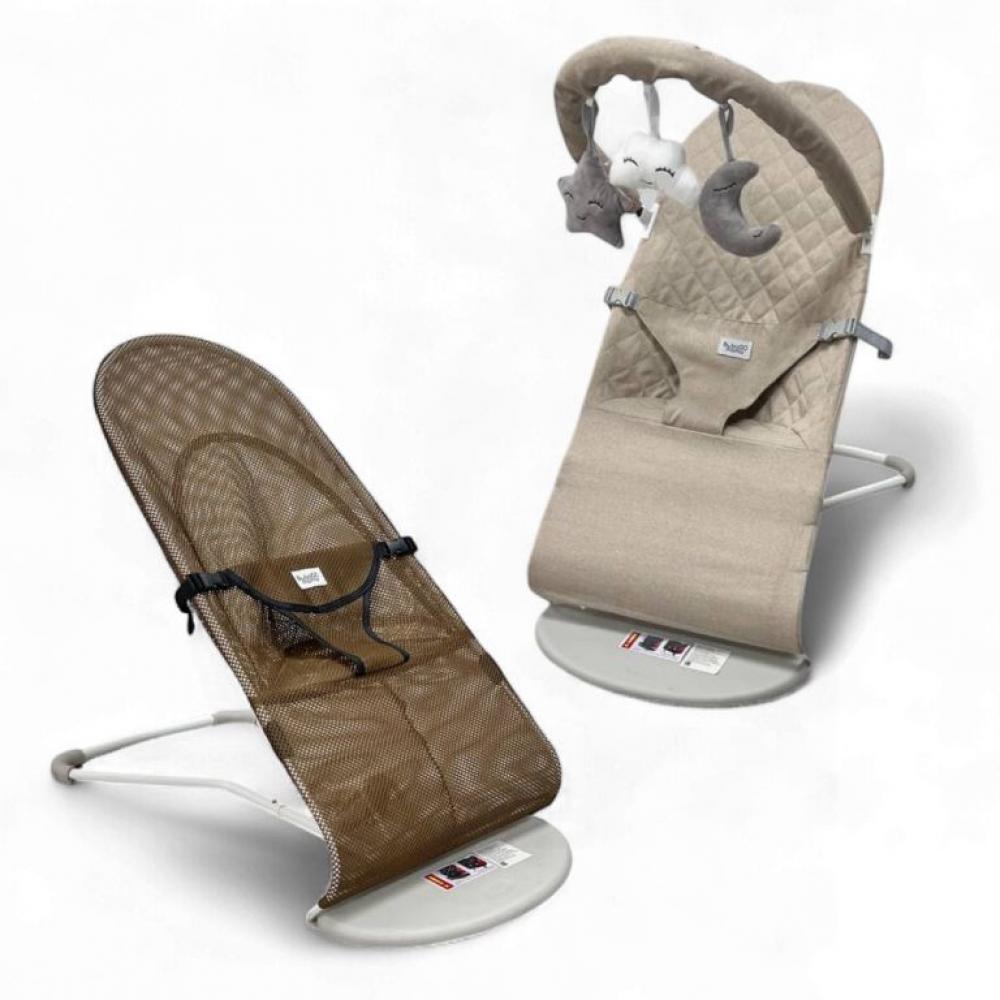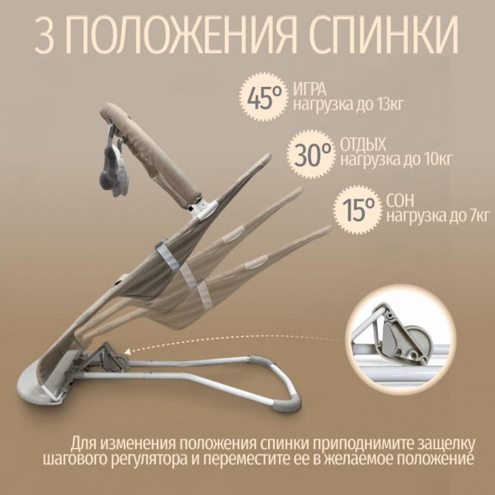 - Шезлонг мягко покачивается от движений малыша или лёгкого толчка родителей — это помогает быстро успокоить кроху.