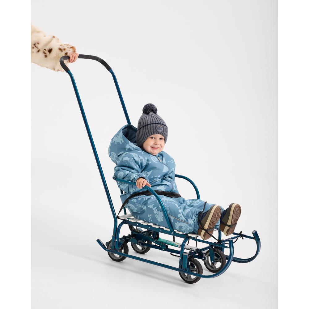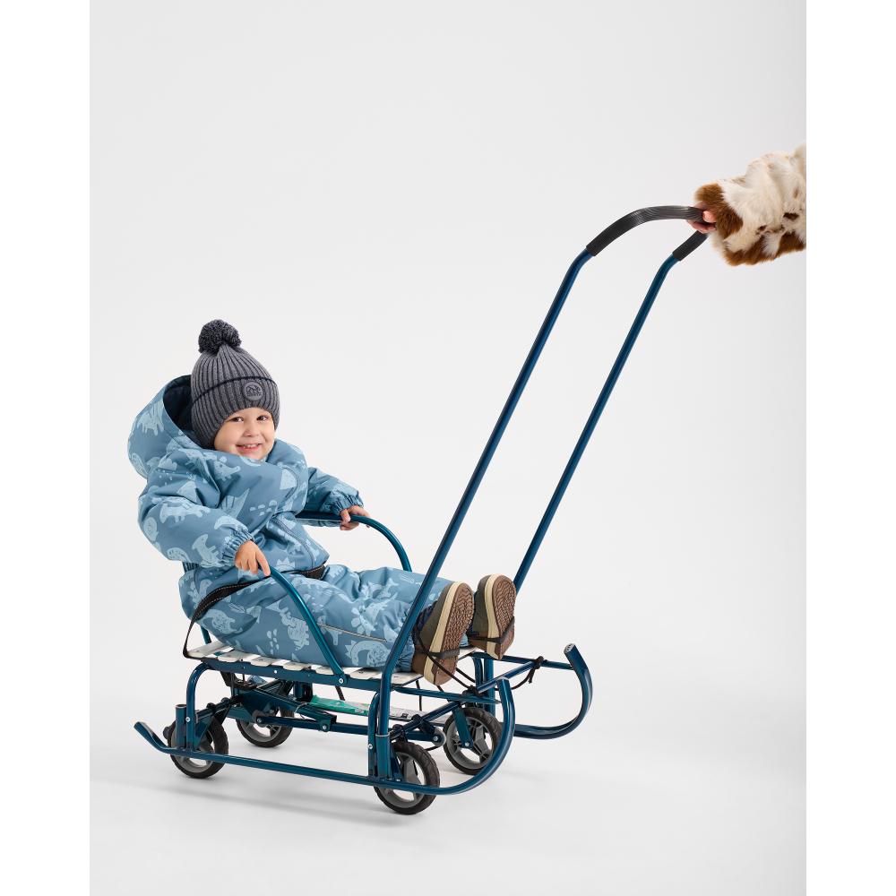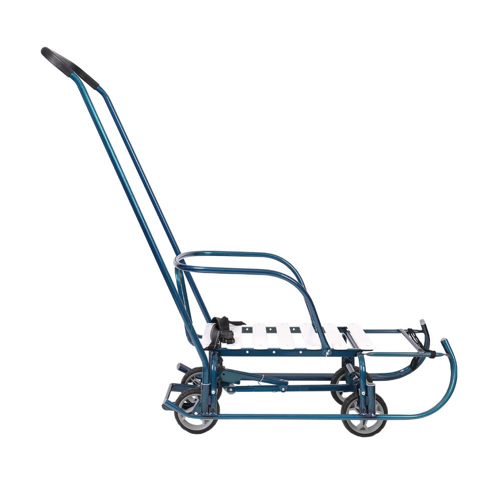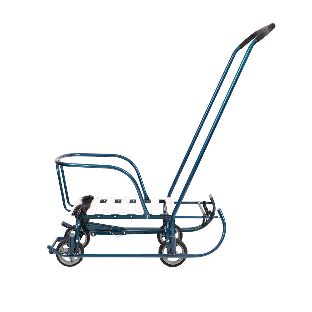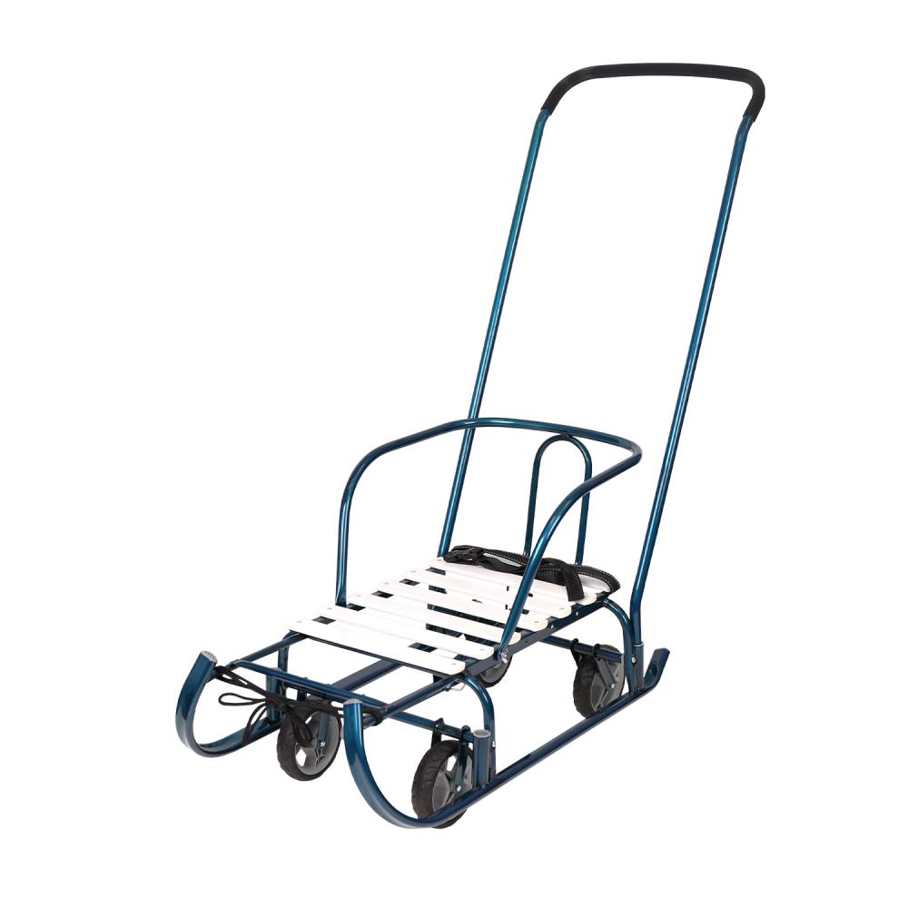 Металлические санки с механизмом выдвижных колесных шасси с родительской ручкой-толкателем для катания и перевозки детей, сиденье увеличенное, размер сиденья 46х31 см