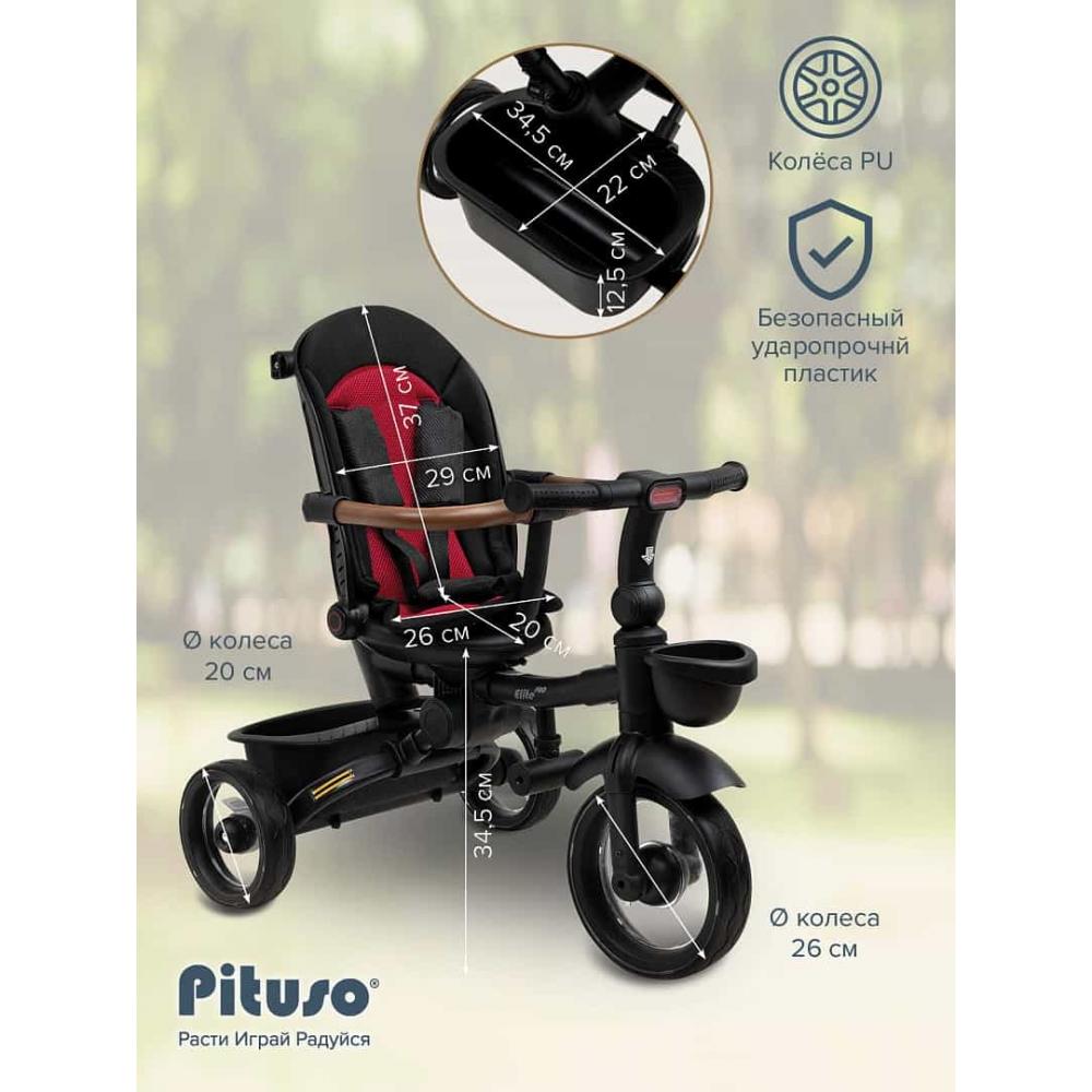 Трехколесный велосипед Pituso Elite Pro — надежный помощник для веселых прогулок всей семьи. Благодаря стальной раме и качественным полиуретановым колесам диаметром 26 см впереди и 20 см сзади, велосипед обеспечивает плавный ход и устойчивость даже на неровных поверхностях. Удобная телескопическая ручка управления высотой от 89 до 97 см позволяет родителям легко контролировать движение велосипеда. Уникальное вращающееся на 360 градусов сиденье позволяет менять направление посадки ребенка, а наклон спинки регулируется для максимального удобства. Рулевая панель с яркими световыми эффектами работает от двух батареек AA (не входят в комплект), обеспечивая дополнительное удовольствие малышу. Вес самого велосипеда всего 8,6 кг, компактные размеры упаковки облегчают хранение и транспортировку.